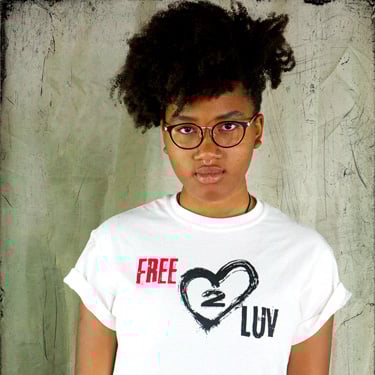 100% soft cotton tee available in white and grey. 100% of proceeds support Free2Luv's initiatives to stand up to bullying, support mental health, and celebrate individuality. 100% grateful for your support!